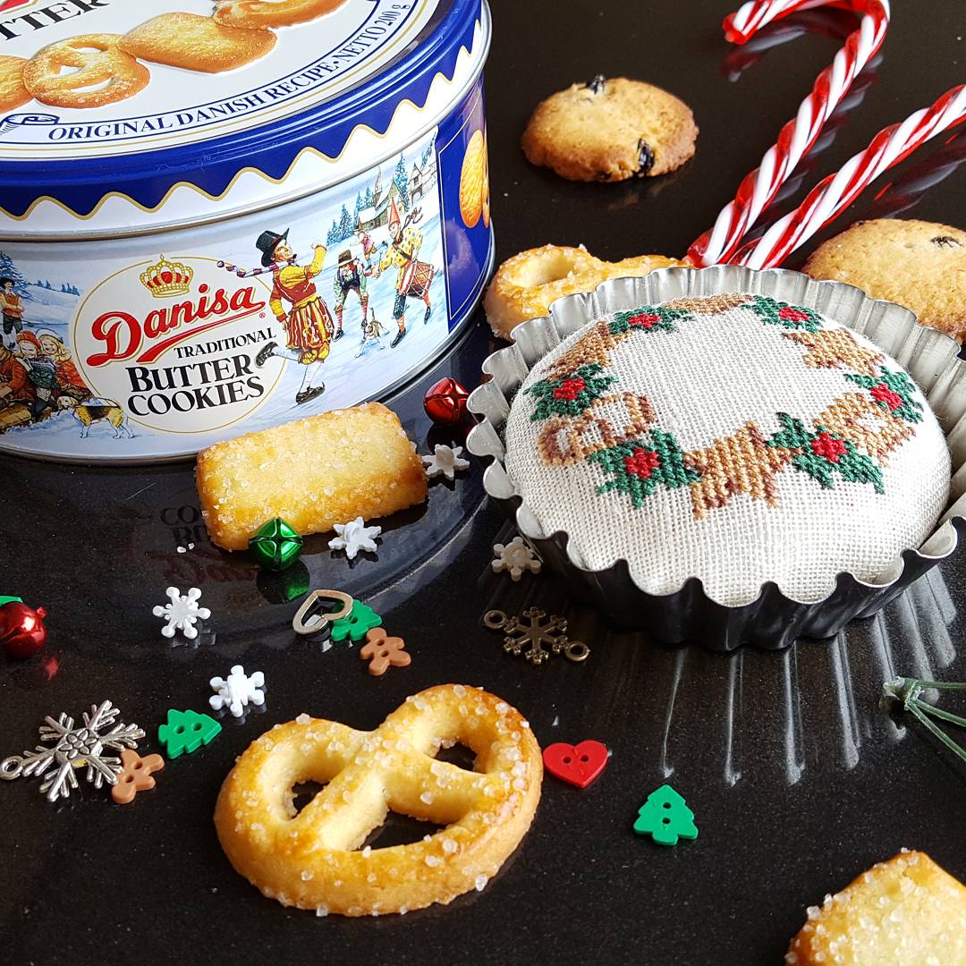 Один из них -Веночек из "песочных" крендельков и печенюшек , которые отлично уместились в жестяную форму для кексов.